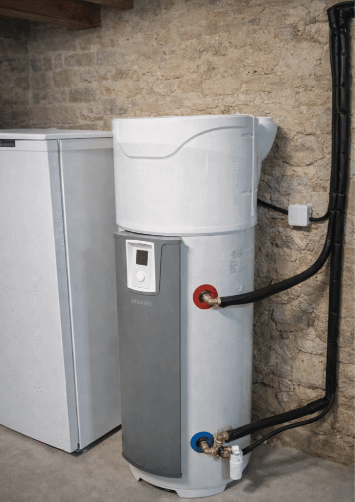 Pour bien comprendre, un ballon thermodynamique monobloc est un chauffe‑eau où la pompe à chaleur intégrée au ballon assure la production d’eau chaude sanitaire en capturant les calories de l’air. Solution compacte et autonome, il se pose en installation simple dans un local ventilé, adapté aux logements avec volume disponible.